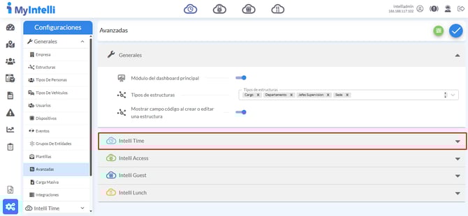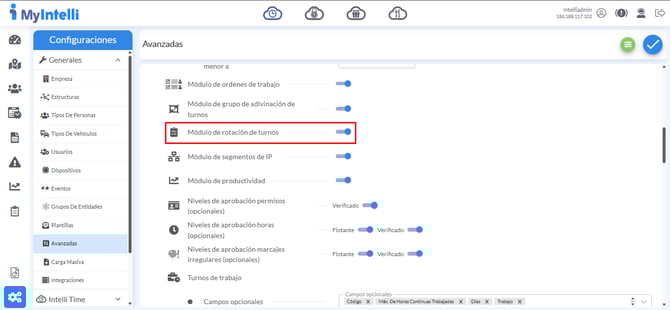 Al ingresar a la plataforma MyIntelli deberá aplicar los siguientes pasos para activar la visualización del submódulo rotación de turnos desde el módulo Avanzadas: