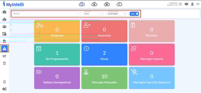 - Paso 2: Posicione el cursor sobre la tarjeta Tardanzas y haga clic.