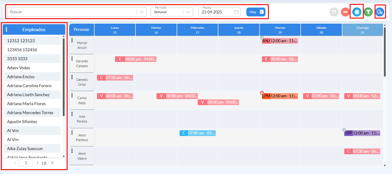 Desde el módulo planificación en la vista calendario podrá realizar la asignación de turnos a sus empleados aplicando los siguientes procedimientos.