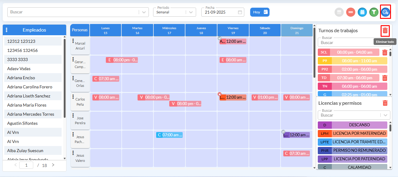 - Paso 6: Luego, desde la lista de turnos haga clic sobre las iniciales del mismo para asignar el turno a los días de la semana que se encuentran sombreados.