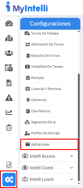 - Paso 1: Ir a la sección de Configuración > Intelli Time > Aplicaciones y podrá ver en forma de lista todas las aplicaciones usadas por el personal.