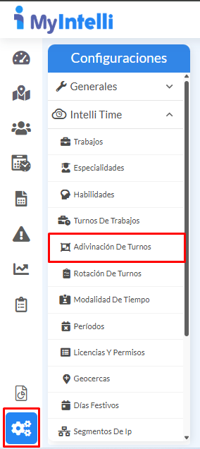 - Paso 1: Ingresa al módulo Adivinación de turnos haciendo clic sobre el icono de la barra lateral izquierda.
