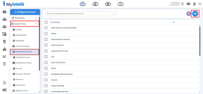 - Paso 2: Antes de crear la adivinación de turnos, es necesario contar con los turnos de trabajos ya que estos serán asociados a la adivinación al momento de ser creado. Teniendo en cuenta esto, haga clic sobre el botón Nuevo.