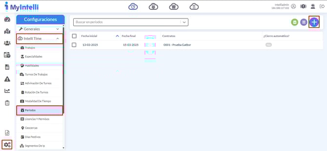 El módulo Períodos, le permitirá aplicar parámetros directamente a los contratos, los cuales definirán el tiempo en que se tenga permitido realizar cambios sobre los mismos, en cuanto a aprobaciones de horas trabajadas por los empleados, licencias o permisos, agregar marcajes manuales desde el sistema, entre otros. Para crear un período realice los siguientes pasos:
