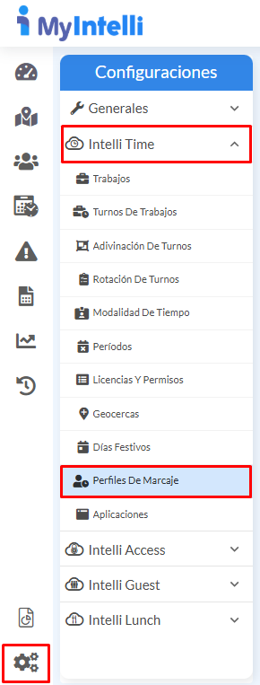 - Paso 1: Ingresa al módulo Perfiles de Marcajes haciendo clic sobre el icono de la barra lateral izquierda.