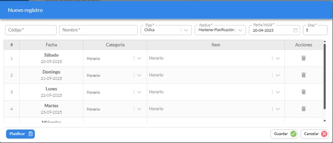- Cíclica: Esta opción indica que la rotación que será creada se renovará en períodos consecutivos de forma automática al alcanzar la cantidad de días total definido.