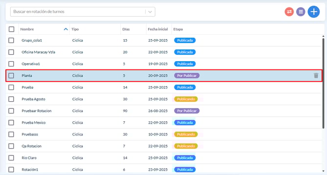 - Paso 4: Haga clic en el botón Guardar para conservar los cambios. Donde se listará en el panel la rotación recién creada.