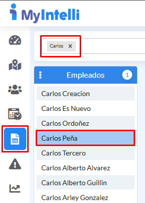 - Paso 1: Una vez dentro del módulo, ubique el registro de los empleados que requiera realizar la revisión seleccionándolos desde el filtro principal Empleados o desde el componente de búsqueda ubicado en la parte superior izquierda de la pantalla.
