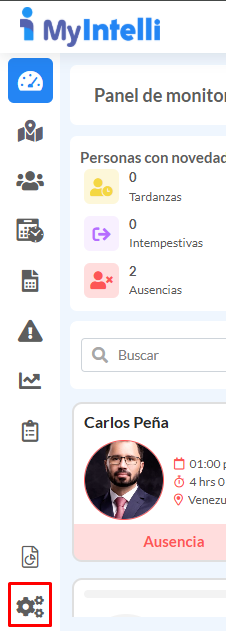 • Paso 1: Desde el panel principal de MyIntelli, vaya a la barra lateral izquierda de la pantalla y haga clic sobre el icono del módulo Configuraciones.