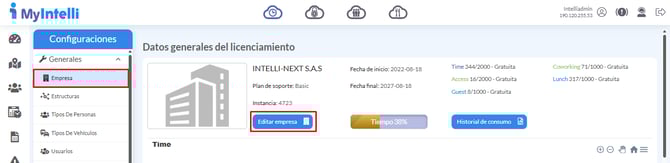 - Paso 1: Ingrese al módulo Configuraciones generales de MyIntelli, donde encontrará el módulo Empresa