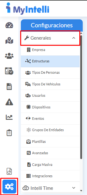 Al ingresar a la plataforma podrá visualizar el panel principal, donde deberá seguir los siguientes pasos para acceder al módulo configuraciones generales de MyIntelli: