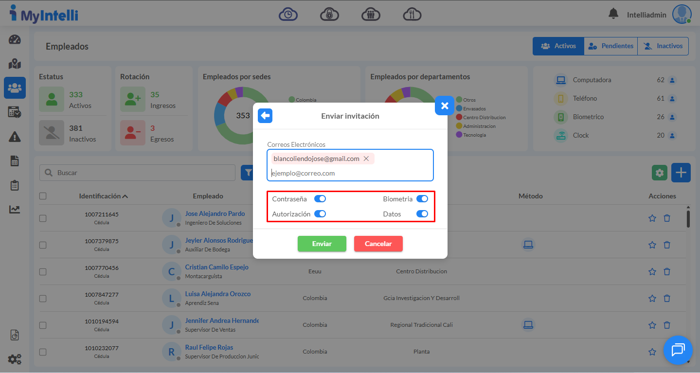 - Los datos a solicitar para el empleado serán: Contraseña, Biometría, Autorización, Datos Personales del empleado.