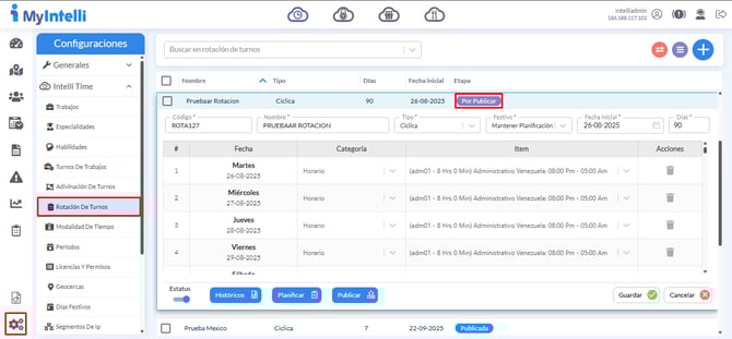 ¿Cómo planificar o modificar una rotación de turno en MyIntelli?