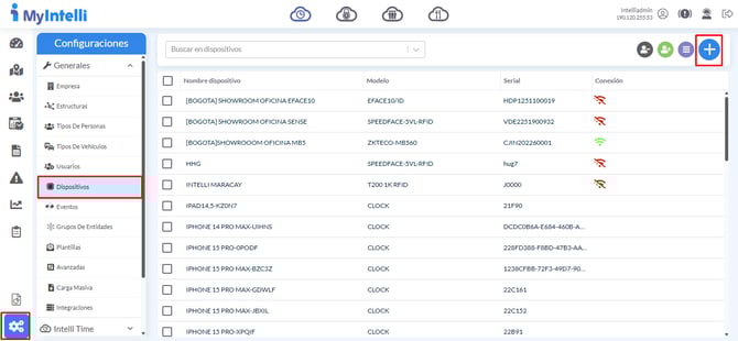 Al ingresar al módulo Configuraciones generales de MyIntelli, encontrará el módulo Dispositivos desde donde podrá registrar los dispositivos en la plataforma, realizando los siguientes pasos: